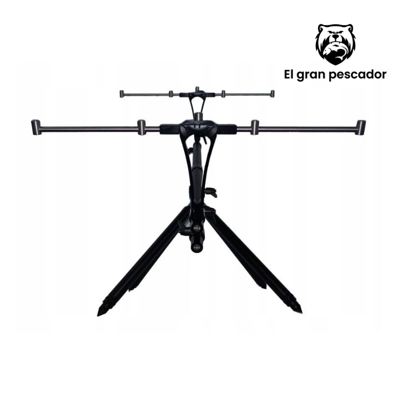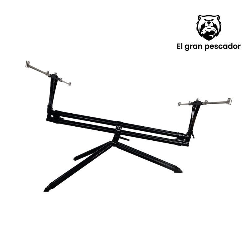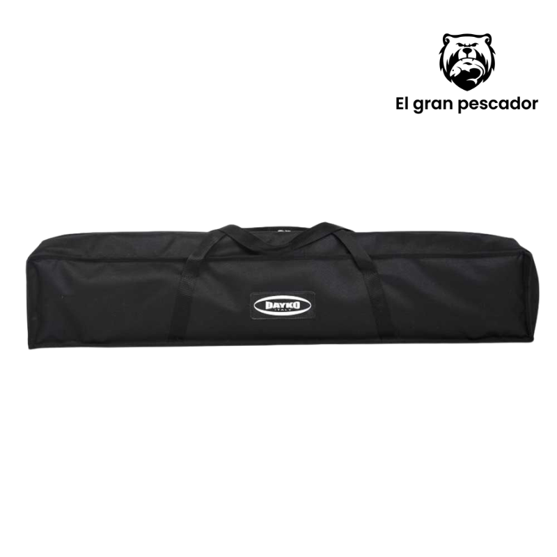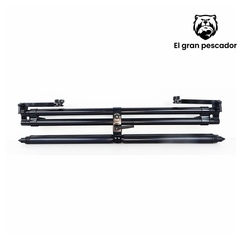 Soporte profesional para cañas Dayko Rod Pod 5 con estructura doble de aluminio ultraresistente, diseñado para sostener 3-5 cañas simultáneamente. Fabricación italiana artesanal con patas extensibles ajustables y agujeros de fijación al suelo para máxima estabilidad. Construcción completamente con herrajes de acero inoxidable. Se despliega de 100 a 160 cm de largo y 70 cm de ancho. Peso aproximado de 6,2 kg. Montaje rápido y transporte cómodo con bolsas incluidas. Acabado negro verde con barra de soporte en acero. Dimensiones de transporte: 105 x 25 x 20 cm. Calidad premium para pescadores exigentes.